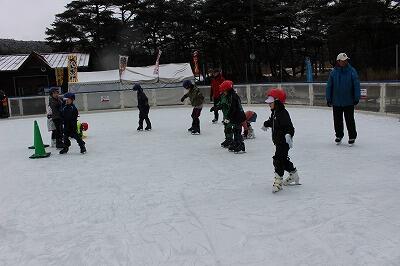 夏尾町は朝から雨が降っていたので、「スケート場へ行ける!」と聞いた子どもたちは大喜びでした!