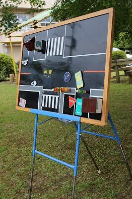 今日だけ中庭に、車道や歩道、横断歩道ができました。