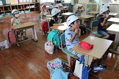 訓練の前に、教室で避難訓練について理解します。