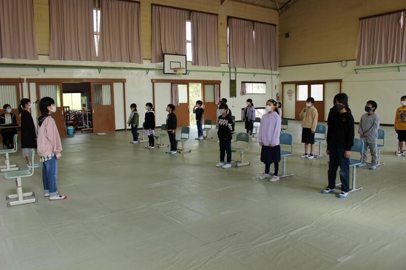 立つタイミングや、礼の練習をしています。歌の練習も頑張っています。