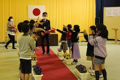 帰りは、子供たちの間を通って退場です。