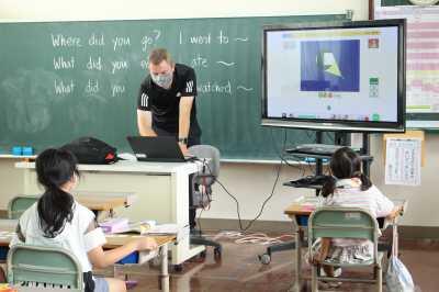 今日はALTのアレックス先生の来校日でした。3・4年生は、画面の中に隠れているアルファベットを当てるクイズをしていました。みんなとても楽しそうに参加していました。