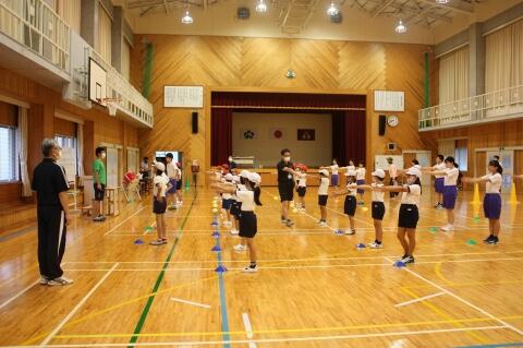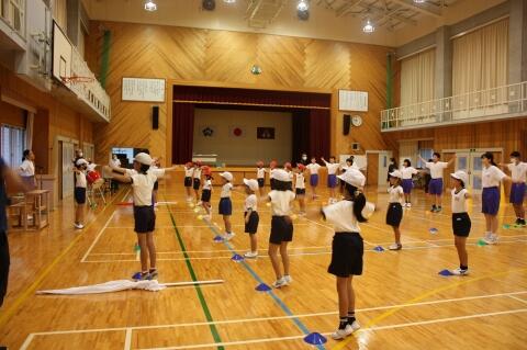 今日の1・2時間目に運動会に向けての小中合同練習を行いました。雨のため、夏尾中学校の体育館に移動して、開会式・閉会式・エール交換・団の応援練習を行いました。明日は、予行練習です。みんなで頑張ります。