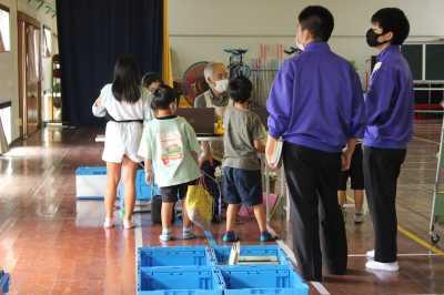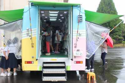 移動図書館『くれよん号』が来校しました。8月が夏休みだったので、今回は2か月ぶりです。どの本にしようかな~面白そうな本がいっぱいです。お目当ての本を選んで、ピッ! 貸し出し手続きOK! 秋の夜長…読書に親しんでくださいね。