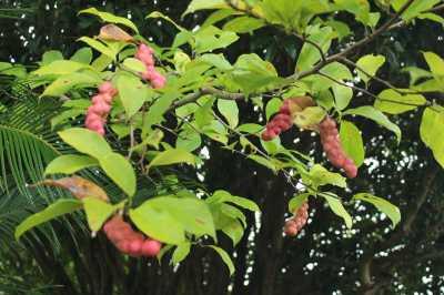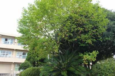 ところで、次の植物は何という名前の植物かご存じでしょうか。夏尾小の校庭にある植物で、春に白い花を咲かせ、秋になると赤いもこもこした実を付ける植物です。