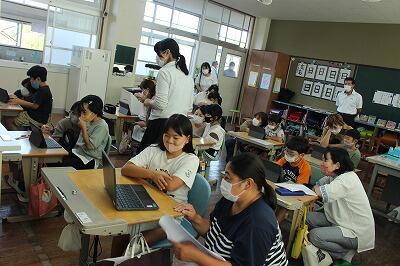 3・4年生は、なつお学で「アプリを見分けよう」という授業をしました。安全なアプリと危険なアプリの見分け方について学びました。授業の最後に、保護者の方と一緒にGoogle Meetを体験しました。