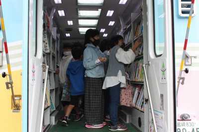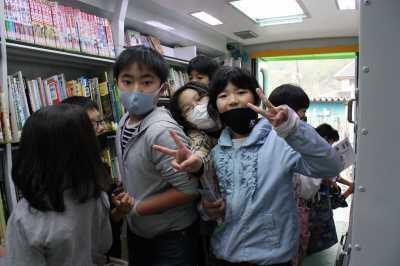 今日は、月に一度の移動図書館『くれよん号』がやってきました。「どの本にしようかな~。」 「あっ、これおもしろそう!」 中には、お気に入りの本を予約していた児童もいました。