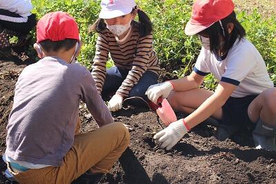 5月に植えたサツマイモの収穫をしました。芋を傷つけないように、丁寧に一生懸命掘っていました。