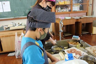 11/12(金)のオープン・スクールで、3~4時間目に全校児童が5つのグループに分かれて体験学習を行いました。料理教室では、学校で収穫したサツマイモを使って「豚汁」と「からいものねったぼ」を作りました。地域の方や保護者の協力を得ながら、美味しい料理ができました。