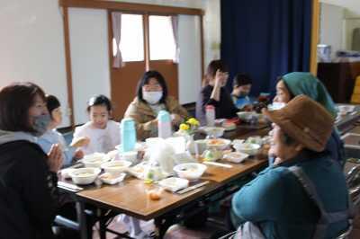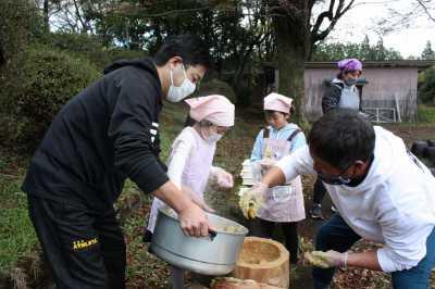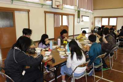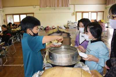 11/12(金)は、参観授業、体験学習の後に、体育館で昼食交流会を行いました。できたての「豚汁、ねったぼ、ムカゴご飯」や採れたての「柿」を美味しくいただきました。地域の方とも楽しく交流できて良かったです。ご協力いただいた地域の方々、保護者の皆様、おかげさまで子どもたちにとって良い経験となりました。ありがとうございました。