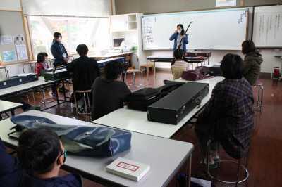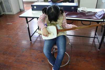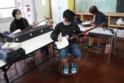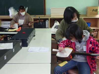 三味線教室では、元夏尾小学校の校長先生に教えていただきました。奴踊りで三味線を見たことはありましたが、実際に演奏したのは初めてでした。「夕焼け小焼け」を練習しました。