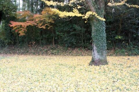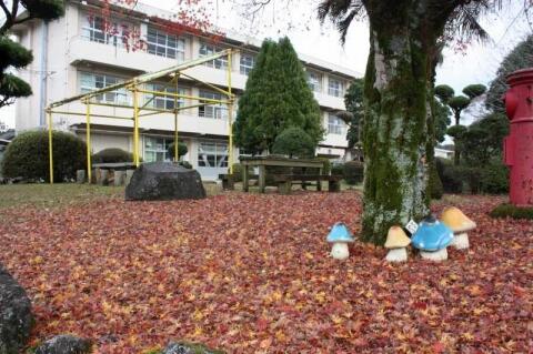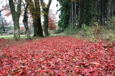 夏尾小の紅葉があっという間に色づき、落ち葉のじゅうたんができました。