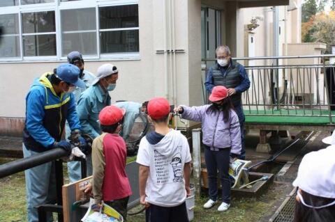 「水道の仕組み」の学習では、実際の水道管から家庭に水を引く仕組みについて分かりやすく説明していただきました。