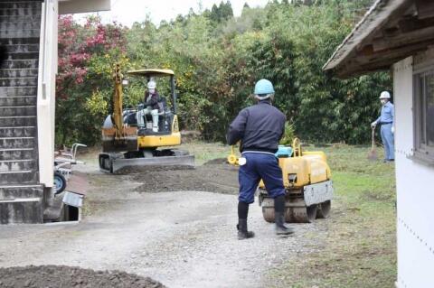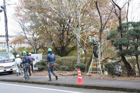 県道沿いの樹木の剪定や校舎裏の路面整備、傷んだタイヤの撤去作業もしていただきました。