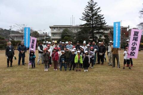 今日、夏尾小学校で『土木の日(=正式には、11月18日だそうです)』の学習が行われました。都城地区建設業協会青年部の方々をはじめ、都城土木事務所・都城造園協同組合・管工事協同組合の方々、測量の方々、都城市役所や三股町役場の方々など、総勢64名の皆様に来ていただき、出前講座や体験活動をとおして、私たちの生活に欠かせない土木のことについて学ぶことができました。