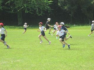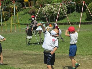 今日は全校体育をしました。体力テストに向けてソフトボール投げや走る練習などをしました。おにごっこで思いっきり走り回りました。雨が降ったり、コロナの影響があったりして、体を動かす機会が少なくなり、久しぶりに晴天のもと外での体育をすることができました。