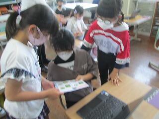 各学級タブレットPCを使った授業を行っています。子どもたちは、使い方にも慣れてきて、様々な使い方をしています。3・4年生は「なつお学」で夏尾小にある植物や虫をパンフレットと見比べながら写真と文字でまとめていました。