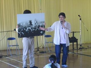 戦争についての朗読劇を鑑賞することで、平和や命の大切さについての学習を行いました。今日は、「サラみやざき」の方々(総勢8名)に来ていただき、「蒼天の向こうへ」という朗読劇を鑑賞しました。太平洋戦争の特攻隊の家族の生き様を描いており、心にしみるものでした。子どもたちも真剣な表情で見入っていました。改めて戦争の悲惨さ、平和の尊さについて考えさせられた時間でした。