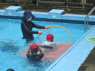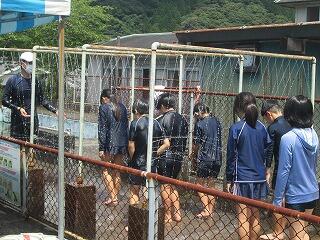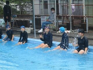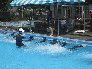 毎日暑い日が続いています。でも、楽しみなのが水泳の時間です。6月と比べると水温、気温とも高く、気持ちよく泳ぐことができます。1・2年生は水に顔をつけたり、輪くぐりや宝探しなどの水に潜ったりする活動が中心です。3年生以上は、泳力別に分かれて泳ぎます。けのびやバタ足、クロールや平泳ぎなど、それぞれのコースで熱心に泳いでいました。それにしても、プールの水の色がきれいだなと思います。