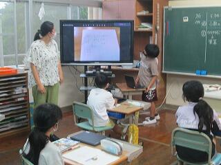 3・4年生の算数の研究授業を行いました。複式学級における算数の進め方や、ICTを活用した授業の流れについて研究を進めています。少人数である強みを活かして学力向上に取り組んでいます。子どもたちは、算数の問題を解くために、考えたり、話し合ったりしてがんばっていました。