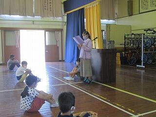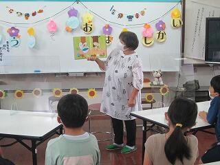 今年初めての地域の方による読み聞かせを実施しました。感染拡大に伴い、なかなか実施できなかった読み聞かせですが、少しずつ以前の活動に戻したいと考えています。今日は1・2年生の子どもたちが対象でしたが、久しぶりの読み聞かせに、「あっ これはりんご」「これはリス」など、楽しそうに答えていました。