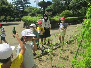 1・2年生で育てている野菜が収穫の時期を迎えました。オクラ、ナス、ピーマン、ゴーヤなど、たくさん収穫しました。子どもたちは自分たちで育てた野菜が大きくなって嬉しそうでした。お家に持って帰っておいしく食べられたかな?