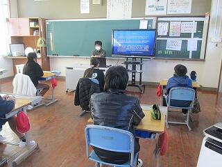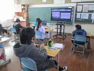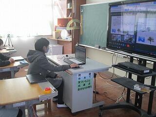 今回は、リモートで自分たちが学習したことを発表し、周りから意見や感想を聞いて交流する学習でした。少人数の学校であるため、多様な考えや感想を聞く機会が少なく、今回の交流で視点の異なる意見を聞くことができ、充実した学習ができました。