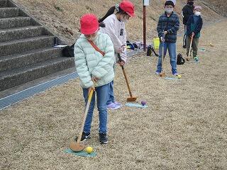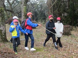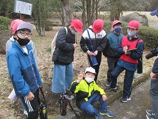 午前中は「追跡ハイキング」をしました。各ポイントごとに問題が出され、弓矢、ゴルフ、長縄、輪投げ、視覚障害体験、大声連絡、カッポカッポなど、昔懐かしい遊びや活動がありました。子どもたちは、6年生の班長を中心に各課題をクリアしていきます。卒業まであとわずかとなりましたが、子どもたち同士の結びつきがより深まったと感じました。
