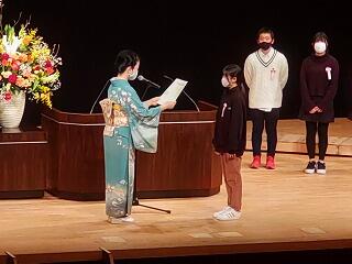 精励賞の授賞式が都城総合文化センターで行われ、夏尾小5・6年生7名が表彰されました。