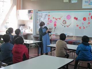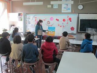 学期に一度、地域の方に読み聞かせをしていただいています。今回は、1・2年生に向けて楽しい本や大型絵本を用意してもらいました。雰囲気作りのために、飾り付けや場所の設置なども工夫してもらいました。子どもたちは、お話の世界に引き込まれ、次はどうなるのだろうと興味津々で見ていました。読み聞かせの先生、楽しい時間をありがとうございました。