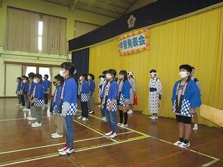 この日は参観日。学習のまとめとなる学習発表会を保護者を招いて行いました。はじめの言葉があった後、5・6年生は「修学旅行の思い出」、1・2年生は「秋さがし」、3・4年生は「将来の夢」「夏尾の自然」についてそれぞれ発表しました。全校の出し物では、伝統芸能である「奴踊り・サンバヤッサ」、全校合唱をしました。各学年とも今までの学習の成果が十分に発揮できた充実した発表会でした。