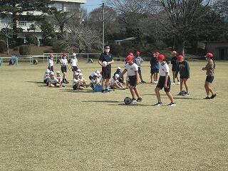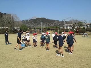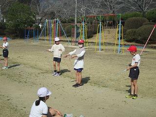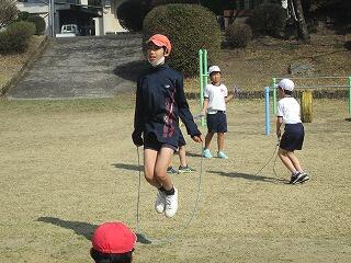 だいぶ春めいてきました。今までは、外の体育では「寒い、寒い」と背を丸めていましたが、今日はぽかぽか陽気で体を動かすにはもってこいの日です。まずは、周囲の遊具や器具を使ってアスレチック。その後は、なわとびの練習です。自分の記録が少しでも伸びるように、新しい技ができるようにみんな一生懸命です。その後はサッカーをしました。パスをしながらのゴールまでです。人数が少ないので、順番がすぐに回ってきます。これから季節もよくなり、大自然の中で思いっきり体を動かしたいですね。