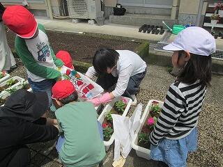 今日は、オープンスクールでした。朝からフッ化物洗口説明、授業参観、花植え、救急救命法、給食試食会と盛りだくさんの内容です。3校時の授業参観では1・2年生が「学校探検紹介」、3・4年生が「算数」、5・6年生が「創立150周年の取材」をしました。4校時は花植えで、地域の方々、保護者のみなさんと一緒に学校の花壇やプランターに夏に向けての花を植えました。
