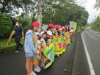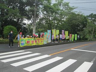 今朝、地域の方、お巡りさん、中学生と一緒にあいさつ運動をしました。交通安全週間とも重なって、学校の前の県道を通る車に向かって「おはようございます」と声をかけました。ドライバーのみなさんもにっこり笑顔を返してくれたり、手を振ってくれたりして交流することができました。交通安全に向けて、ほんの少しでも意識の向上に役立つことを願いながらあいさつをしました。都城と小林を結ぶ交通量の多い県道ですので、ドライバーのみなさんは安全運転に心がけてもらいたいと思います。