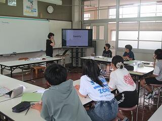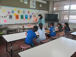 今日は、夏尾中の教頭先生が来られて、5・6年生に英語の授業をしてくださいました。普段は担任の先生やALTの先生との授業ですが、中学校の先生の授業に子どもたちは目を輝かせていました。先生の自己紹介や世界の国のこと、好きな動物や食べ物など、英会話を交えながら楽しく学ぶことができました。この活動は、中学校を身近に感じることができるとともに、中1ギャップをなくし小中一貫教育につながると考えています。夏尾中の先生方、ご協力ありがとうございます。