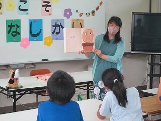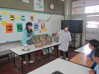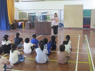 今日は、ボランティアの先生に来ていただき、1・2年生に読み聞かせをしてもらいました。教室の飾り付けをして、楽しい雰囲気で始まりました。お話が進んでいくと子どもたちは「どうなるのだろう」「大丈夫かな」などと口々につぶやきながら、物語の中に入り込んでいくようでした。学期に1回の読み聞かせですが、今回も工夫したお話で子どもたちは楽しい時間を過すことができました。