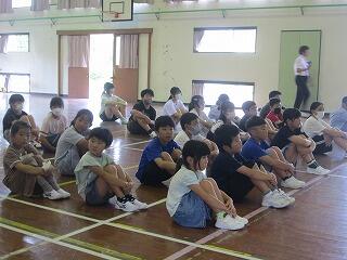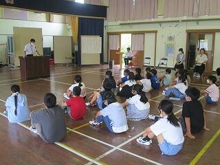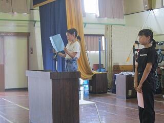 今日は1学期の終わりの日、終業式が行われました。まずは、代表の3年生と5年生の児童が1学期に頑張ったことと2学期への抱負を話してくれました。次に校長先生の話、校歌斉唱という流れでした。式の終了後は、夏休みにおける注意点を各部の先生から話してもらいました。この1学期は、授業や行事など多くの体験活動が実施できました。さまざまな経験を経て、子どもたちは着実に成長できたと思います。協力してくださいました保護者の皆様、体験活動のお手伝いをしてくださいました地域の方々、多くの方々に支えていただきました。本当にありがとうございました。