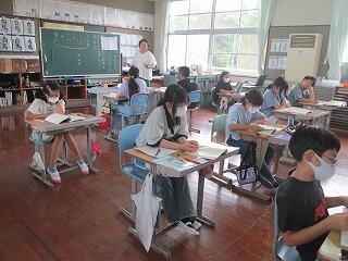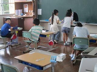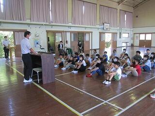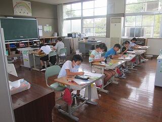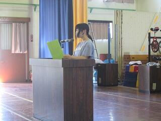 始業式では、2名の代表の人が、2学期に頑張ることを話してくれました。大変すばらしい発表でした。始業式が終ると教室に帰って、掃除や宿題の提出をしました。授業も進めていました。久しぶりの学校で、子どもたちはうれしそうに過していました。