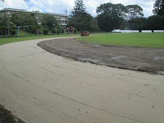 昨年の台風14号で、運動場の端が崩れてしまいました。子どもたちが運動するのに支障があったため、この夏休みの期間にトラックを移動する工事をしてもらいました。天候の不良もあり工事が中断することもありましたが、今日、無事終了しました。この新しくなった運動場で、運動会をすることが楽しみになりました。工事関係の方々、ありがとうございました。