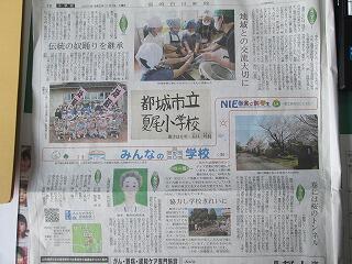 本日の宮崎日日新聞に夏尾小学校の記事が掲載されていました。1月前ぐらいに新聞社から夏尾小学校の紹介をしますと連絡がありました。「みんなの学校」のページです。5・6年生の子どもたちが学校の様子や行事などについて記事を書きました。自分が書いた記事が、新聞に載ることなどめったにないことです。今日の新聞を見て、子どもたちは大喜びでした。150年を迎えた夏尾小の良いPRになったかなと思います。