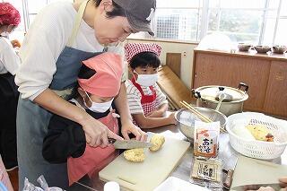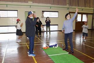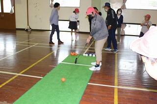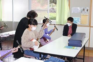 地域の方、保護者を交えてのオープンスクールを行いました。三味線、さつまいも料理、スカットボール(雨のためグラウンドボールより変更)の内容でした。三味線は運動会や各お祭りのとき、奴踊りの生演奏でお世話になった先生や保護者に教えてもらいました。さつまいも料理は、学校の畑で作ったいもを使って、がね(さつまいも、野菜を揚げたもの)やさつま汁を作りました。スカットボールは体育館で、地域の方と一緒にチームを組み競技しました。子どもたちは、自分で活動を選び、年に1回の体験学習を楽しんでいました。最後に皆さんに料理グループが作ったがねやさつま汁をふるまいました。教えてくださいました地域の先生方、参加してくださいました方々、ありがとうございました。