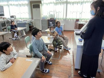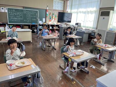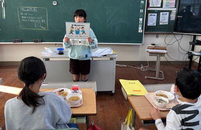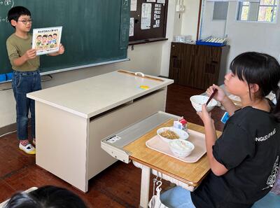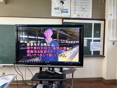 20日に「食育タイム」(給食前の食に関する小話)を実施しました。
