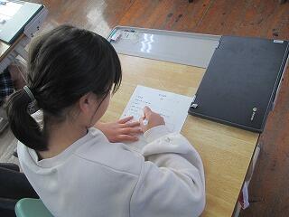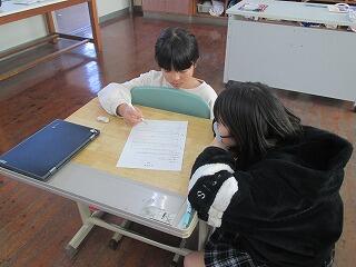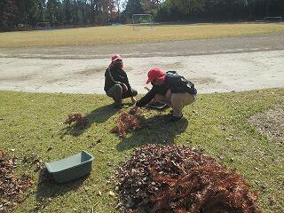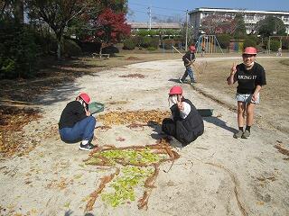 5・6年生の図工に「地球は大きなキャンバスだ」という学習があります。落ち葉を使って作る作品ですが、子どもたちは数日前からこの学習を楽しみにしていました。色とりどり、形も様々な落ち葉を集めて、「日本列島」「冬の女の子」「食べ物」など、思い思いに作っていました。今の図工は絵を描くだけでなく、自由な発想から生まれる作品を楽しむ活動なども入っています。