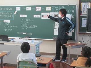 3・4年生のなつお学(総合的な学習の時間)の研究授業を行いました。3・4年生は夏尾の自然に関するテーマで、今回は自分たちが育てている食べ物について調べていくことにしました。まず、「計画する」「調べる」「まとめる」「伝える」といった学習の見通しをもって進めることにしました。授業では地域の方と一緒に作った梅干しやみそ、さつまいもなど、学校で育てている野菜をどうやって紹介しようかということで話し合いました。調べる方法やまとめる方法は、今まで学習で使った国語や理科、社会などの学習を活かして分かりやすい方法で伝えることにします。この「なつお学」では、他教科を活用しながら学習を進めていくことにしています。どんな表現方法で紹介してくれるのか楽しみです。