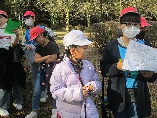 御池少年自然の家にバスで遠足に行きました。この日は2月のわりにはぽかぽか陽気で、活動しやすい日でした。まずはじめに、少年自然の家の所員の方から追跡ハイキングの説明を聞きました。そして、いよいよ活動です。リーダーを中心に弓矢、グランドゴルフ、長縄とび、目隠し体験、大声など、様々な活動を体験しました。異学年でのグループで上学年はリーダーシップを下学年は話を聞いてやり遂げることを目指しました。笑いあり、応援あり、くやしさありの楽しい活動となりました。午後は6年生に向けてのありがとう集会をしました。