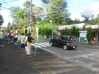 秋の交通安全運動に合わせて、あいさつ運動を行いました。地域の方々や交通指導員、夏尾中生徒の皆さんと一緒の活動です。旗や大弾幕を持って、道行く車に大きな声で「おはようございます」とあいさつ。子ども達もドライバーの皆さんも交通安全への意識が高まったことでしょう。