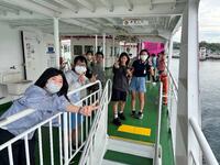 修学旅行1日目。有村溶岩展望所から桜島フェリーを使って鹿児島市内に移動です。