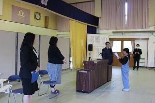 5年生から順に学年の代表児童が修了証をもらいました。