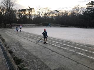寒い寒い朝でした。運動場には一面霜が降りていました。そんな中、御池小学校の児童は運動場を走り、トンボ掛けを行いました。毎日をしっかりがんばっています。