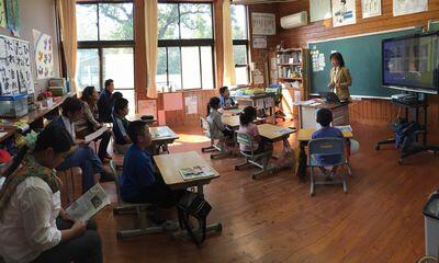 吉之元小学校を会場に西岳小、夏尾小、御池小の4校の児童が集まってのふれあい集合学習が行われました。最初に体育館で自己紹介とオリエンテーションが行われました。その後は低、中、高学年に分かれて普段できない教育活動に取り組みました。